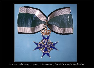 obtained, the member is awarded a reproduction Blue Max medal as well.